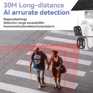Dual-lens dual-screen design, Full-color night vision, AI humanoid detection and Auto Tracking, IP66 waterproof, solar-powered & wire-free. AOV 24/7 Hous recording,work in any off-grid without Wifi and Power